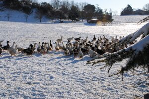 En tant que producteur à la ferme, les canetons arrivent sur notre exploitation à l'âge de 1 jours, ils proviennent de couvoirs de le région. Eté comme hiver il faut leur fournir une chaleur aux environs de 28 °C en ambiance et 35°C sous les éleveuses.